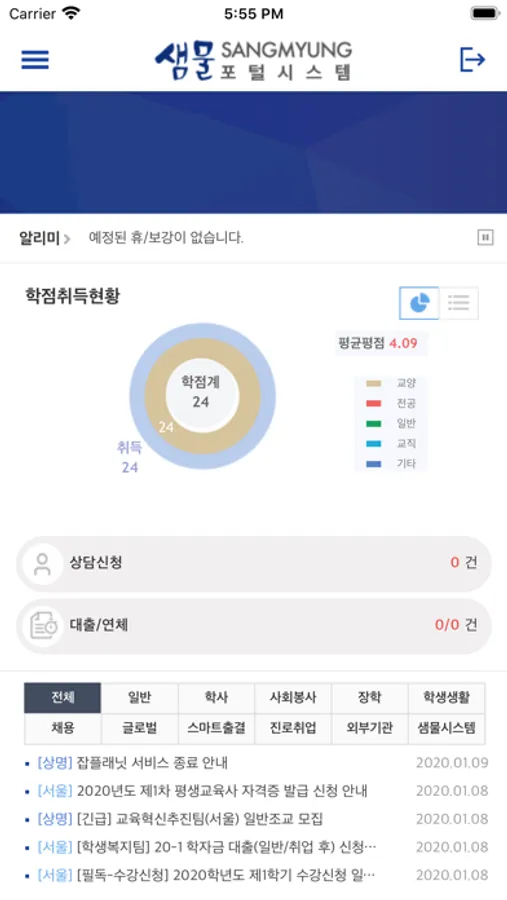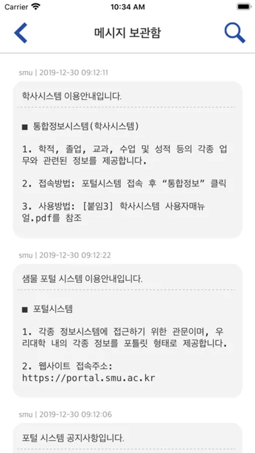 상명대학교 제공하는 모바일 포털 어플리케이션을 통해서 주요 서비스를 통합하여 사용하실 수 있습니다.