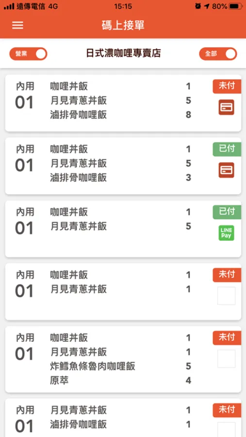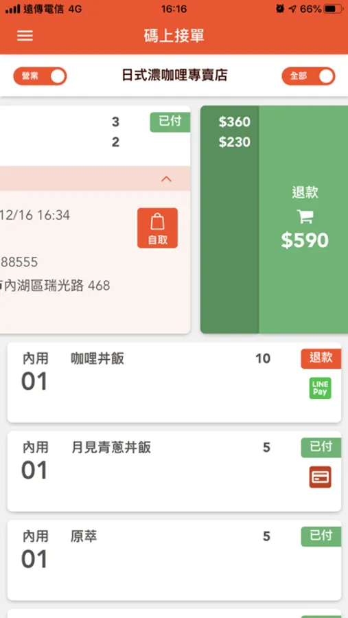 店家進入店家app即可進行收單、出餐、收款及編輯菜單等功能,輕鬆運用滑動螢幕的方式進行出餐及收款。