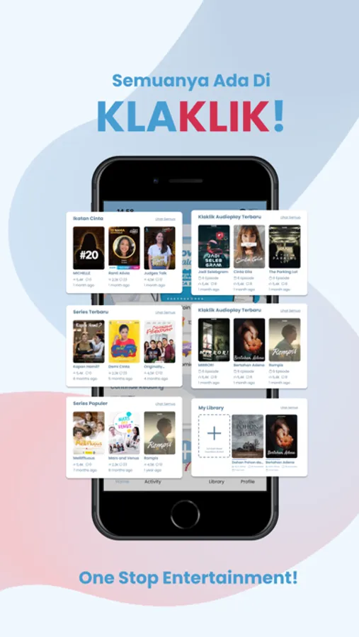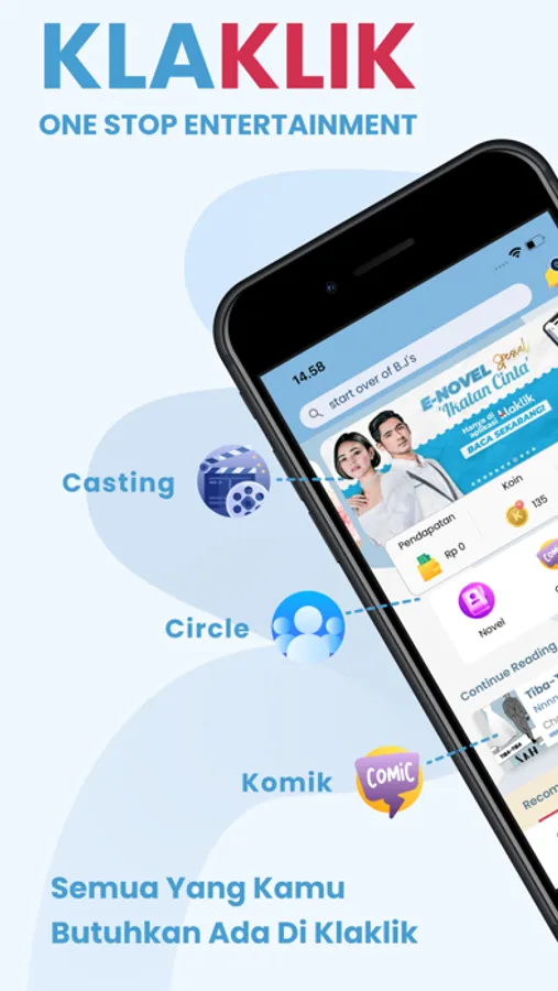 Klaklik is the first story-based innovative digital platform that provides six formats, namely: NOVEL, COMIC, CIRCLE, AUDIOPLAY, CASTING, PLAY.