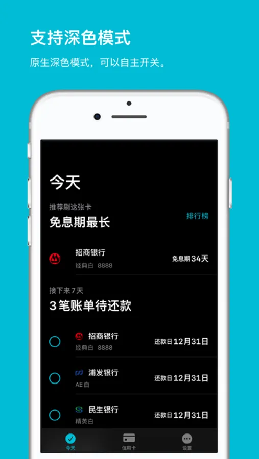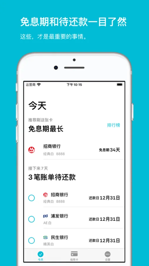 - 你关心的,放在首页:在App首页展示最长免息期、最近7天内需要还款的账单。