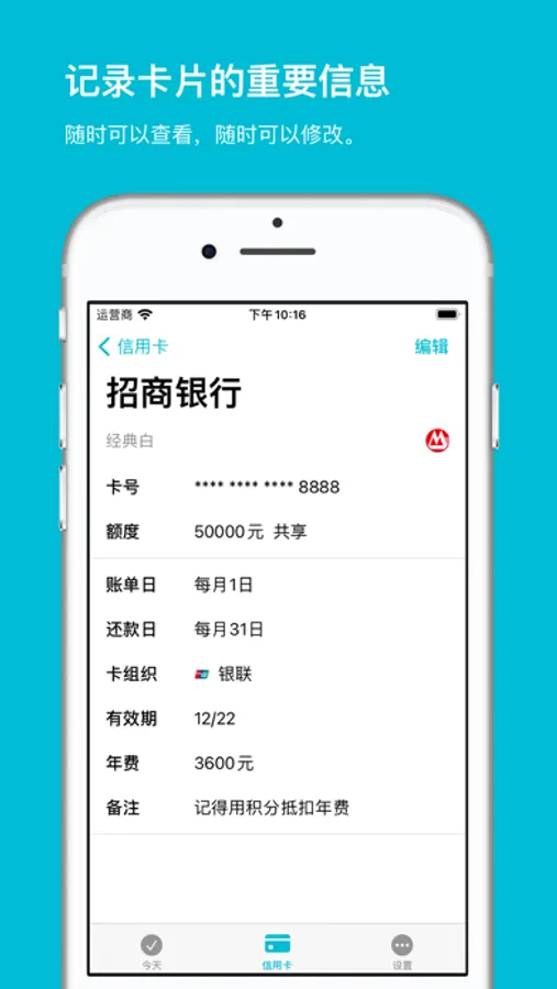 - 我们知道信用卡是非常敏感的隐私信息,因此全部数据均安全存储在手机内,绝对不会上传给我们或者第三方。