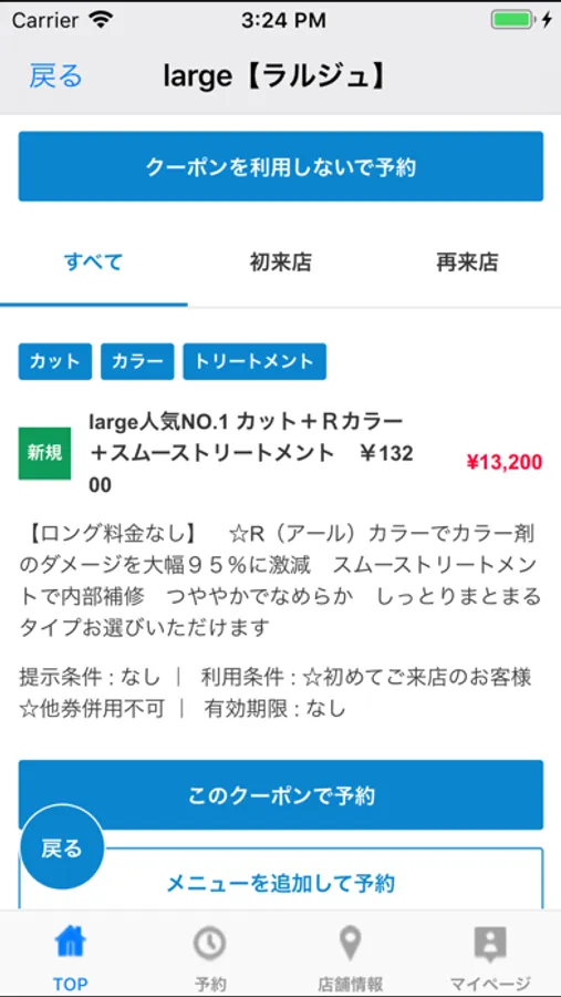 お得なクーポンが配信されます。ネット予約時にクーポン利用での予約も可能なので来店時もスムーズに施術頂けます。