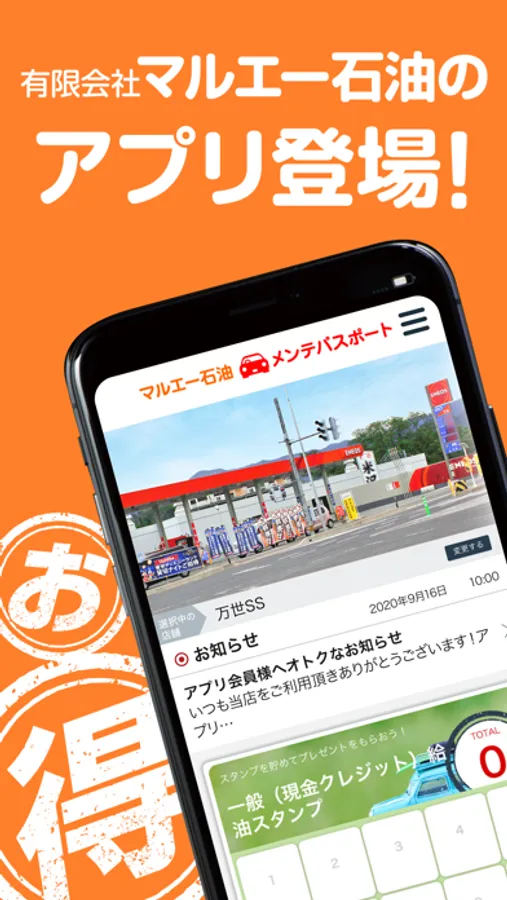 当社の公式アプリ「マルエー石油 CARメンテPASSPORT」ではアプリで簡単に洗車・コーティングなどのご予約や愛車のメンテナンス管理が可能の他、当店で利用いただけるお得なクーポンや各種メニューの割引情報を配信しております。