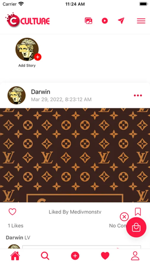 From the Home tab, the first screen that appears when the app is opened, Culture App users can view photos from accounts they follow in a format similar to that of Facebook's newsfeed. Culture App Stories -- posted by users you're following -- are displayed at the top of the Home feed in the form of circular profile photos. Users can access Culture App Direct at the top corner of their home feed.
