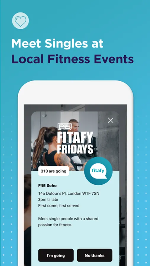 Fitafy uses the best of dating technology to allow users to find meaningful connections based on common health and fitness goals. Look through fitness profiles to learn a person’s name, age, occupation, location, fitness interests, dietary interests, prompt answers, last run (distance and time), today’s activity and more! Stay fit and get off your phone - connect with others and plan fitness dates to get you both moving.