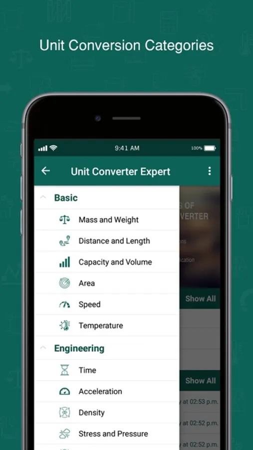 The Application is compatible with all the devices and consists of five main categories of units and measurements to select.
