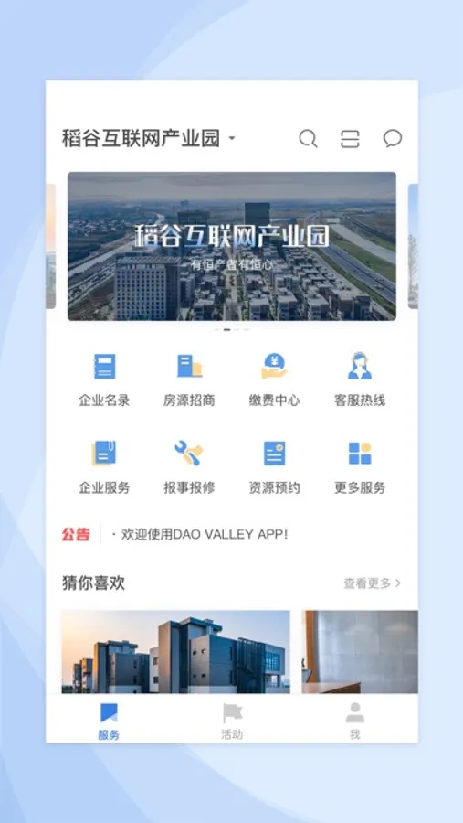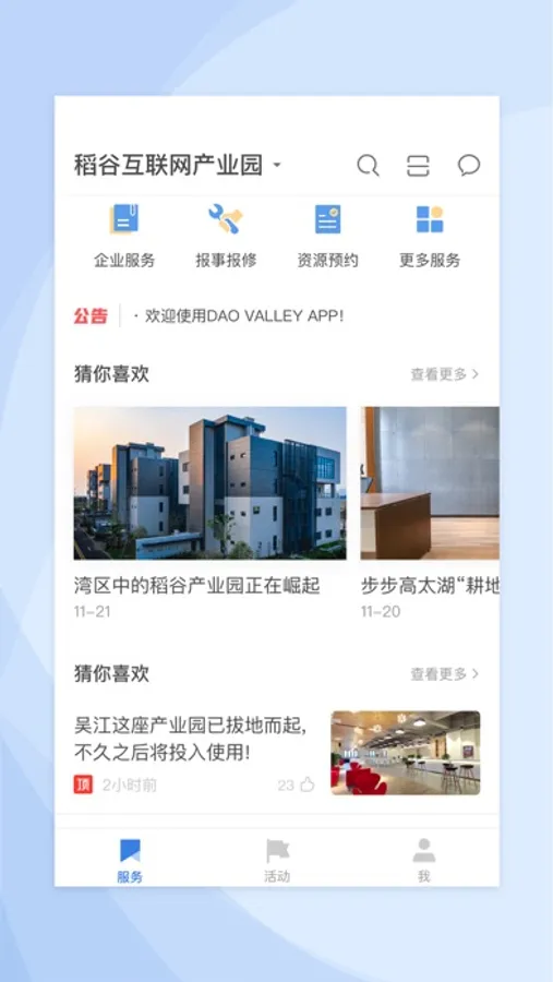 (4)运营服务 为园区用户提供活动资讯的即时通道,快速了解园区大事件、新鲜事,参与园区社群互动