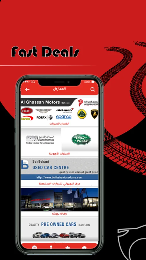 Fast Deals app provides you with everything you are looking for in the field of cars, buying and selling cars, renting cars, driving instructors, surfaces, spare parts..etc.