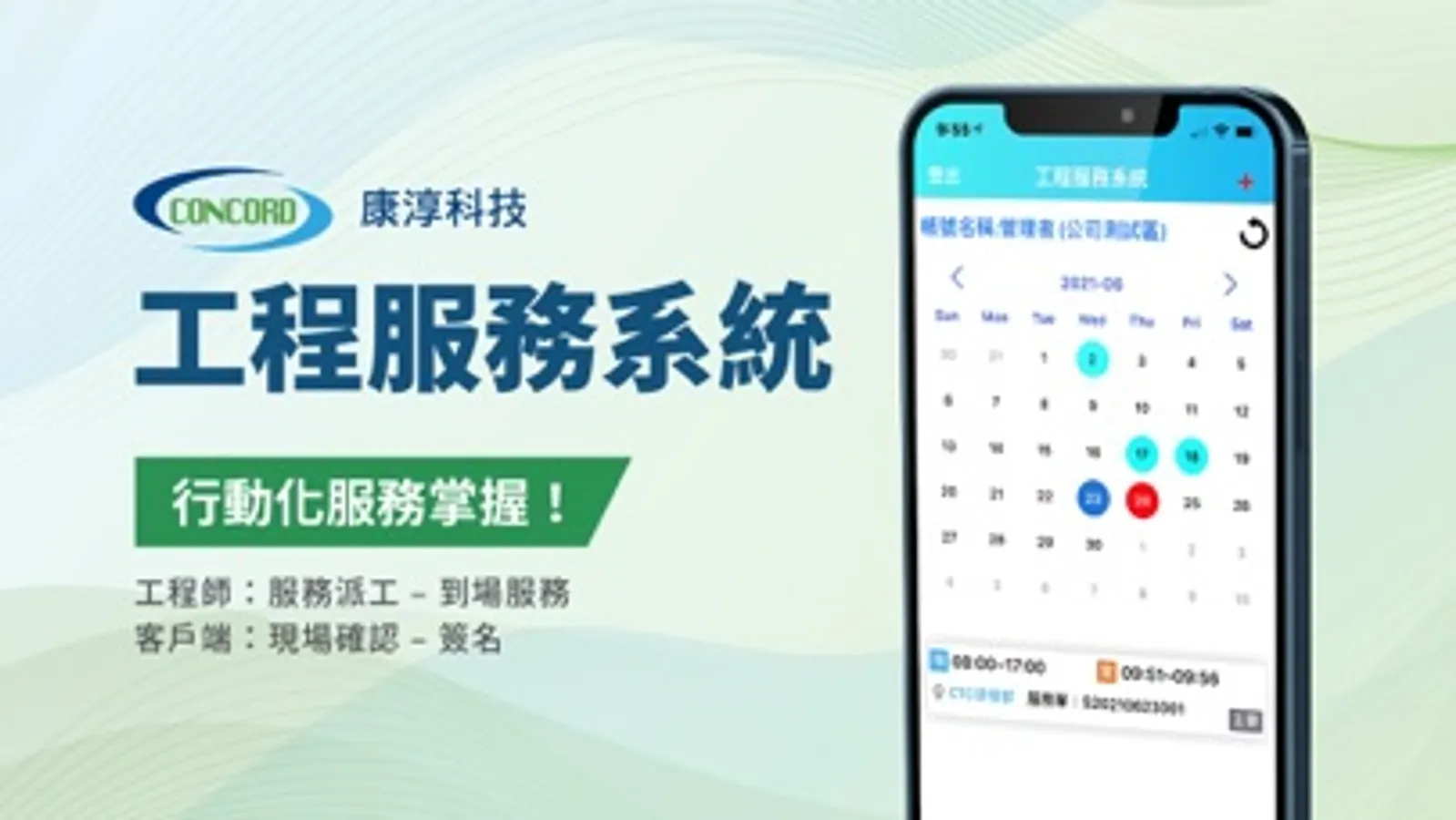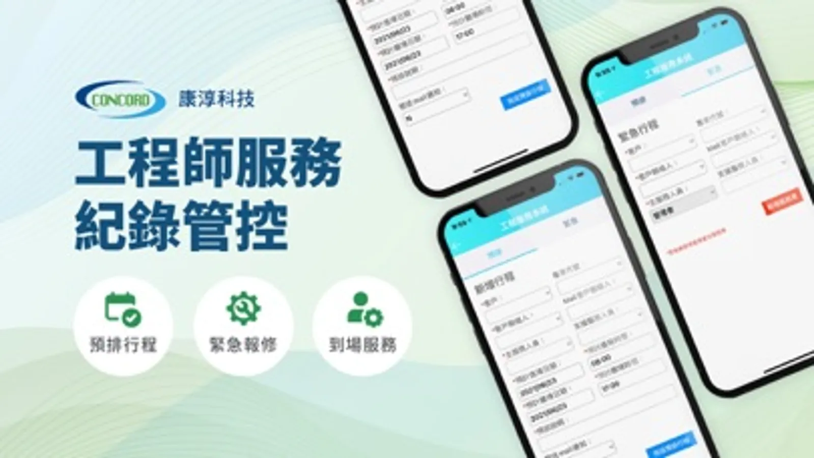 輕鬆安排行程,便利工程師建立服務單。