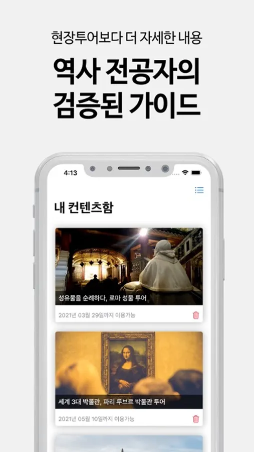 • 기존 PC 서비스와 동일하게 ‘내 ‘컨텐츠함에서 이용 중인 투어를 시청할 수 있습니다.