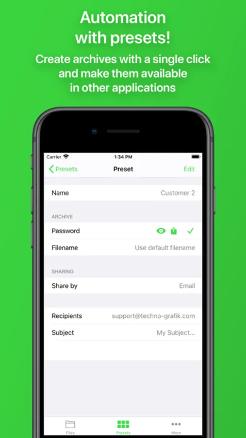Zip-Share offers unlimited presets. Thus, you can save individual presets for each customer. Presets can contain: