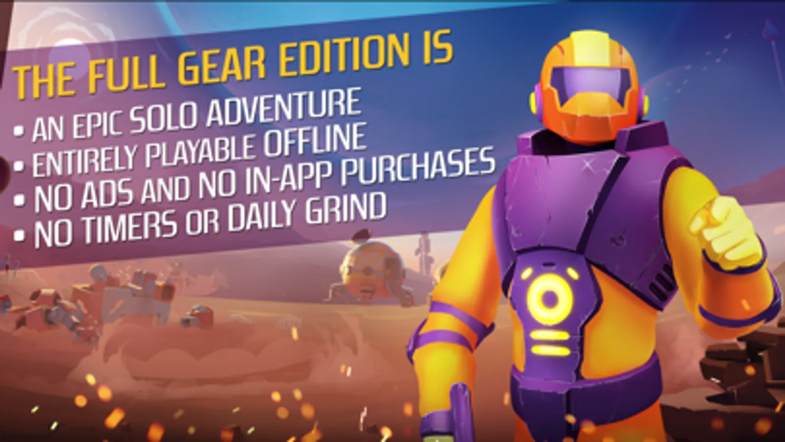 - No ads and no in-app purchases. Play how you want. The Full Gear Edition is a true paid game: once you install it, everything is available to you… well, provided you’re good enough to play that far.