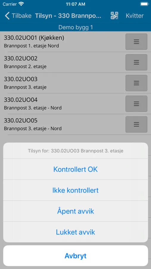 - Kvittere periodiske jobber (internkontroll), med avviksregistrering