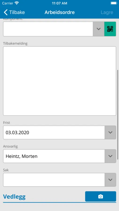 - Scanne QR-koder for rask registrering av arbeidsordre eller historikk