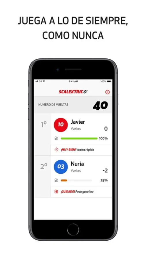 Inicia la carrera y sigue en todo momento las posiciones de los pilotos y los tiempos por vuelta. SCX Advance lleva la competición al máximo nivel!! El resumen final te permite analizar y comparar todos los participantes de la carrera y las vueltas rápidas.