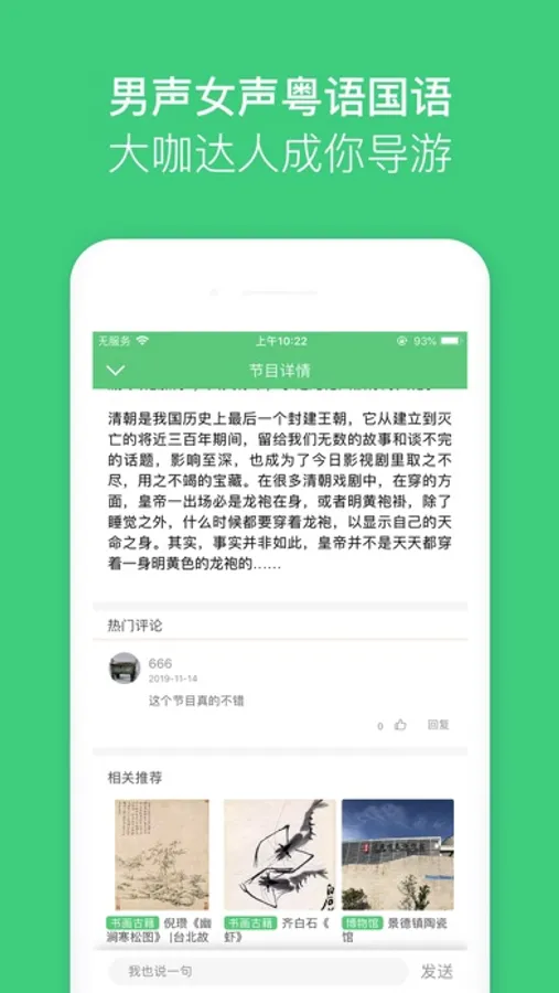 专业主播真人录音:从央视主播到名人大咖的真人录音讲解,让名人给你当导游。