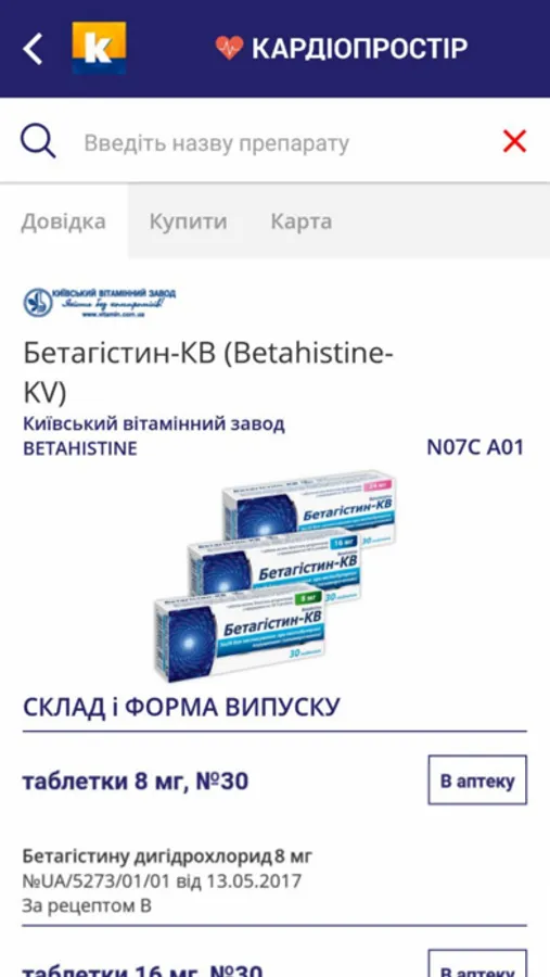 - дозволяє дізнатися про наявність препарату в аптеці за заданою адресою;