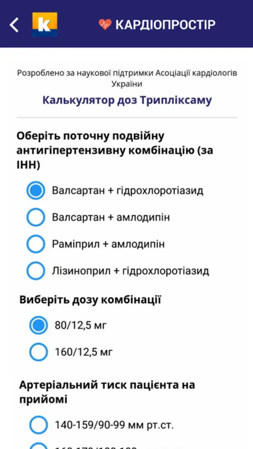 - медичні калькулятори для розрахунку показників;