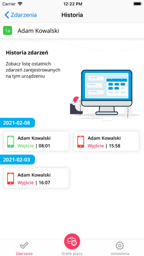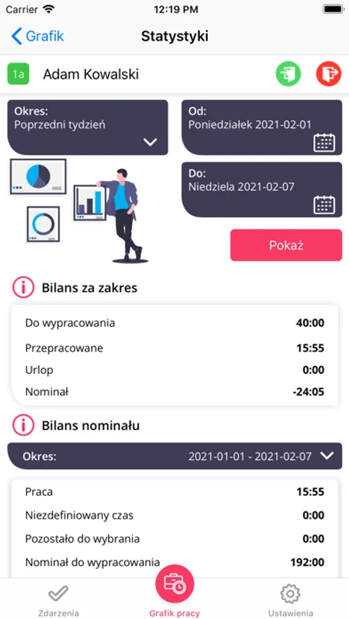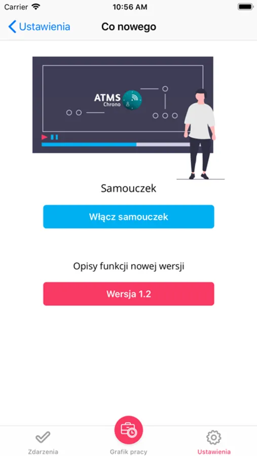 Wykorzystując ATMS Chrono, w łatwy sposób zarejestrujesz rozpoczęcie lub zakończenie pracy, sprawdzisz ile przysługuje Ci urlopu i ile godzin przepracowałeś w wybranym okresie. W ATMS Chrono szybko wypiszesz i prześlesz wniosek o urlop.