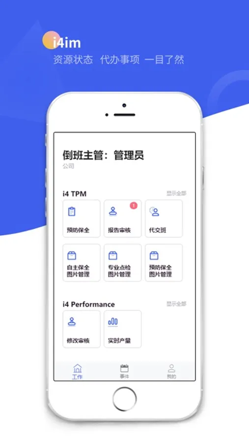 i4im是一款面向全员的智能化生产管理软件,宗旨是构建精益的生产体系,创造协同全员的信息系统,迈向互联万物的智能制造。包含了i4TPM和i4Performance、基础管理三个模块。我们给企业带来标准化的流程、实时化的数据、扁平化协同、全员参与,最后在云端计算,数据安全可靠有效。我们软件的优点:灵活选配,功能模块组件化;快速上线,云端快速部署,可快速完成上线实施;操作便捷,软件界面友好,培新周期短;开放接口,支持与主流ERP系统对接。
