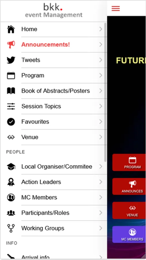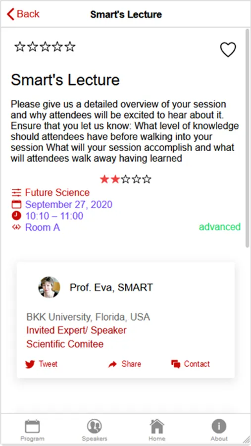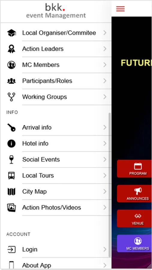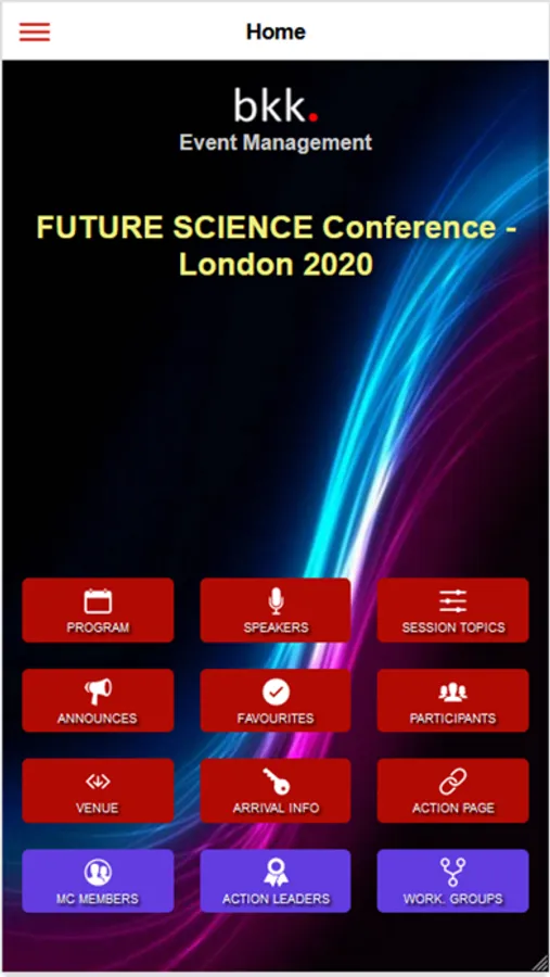 The menu of this App is designed for Scientific Action meetings but can be fully customizable according to your special needs. We can build together your “own” app for a successful event. This app offers a demonstration of all the key features for the management of a typical Scientific Action meeting, such as, organizer info, program, announcements and last moment notifications, integrated tweets, speakers, session topics, participants, Action Leading Positions, MC members, exhibitors/ sponsors, hotel info, venue, arrival info, social events, local tours. Through login the Action Members and meeting participants can complete their personal data or Member Profile and to have access to abstracts, photos, videos and other conference material. Moreover, participants can assess/ evaluate a lecture or a speaker and thus provide instant feedback.