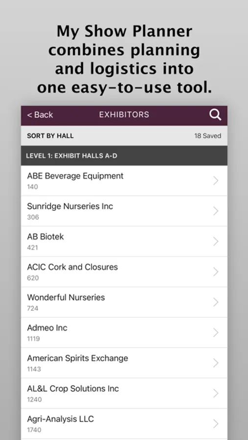 App users can easily create their own customized itinerary of exhibitor booths to visit and sessions to attend. The app provides:
