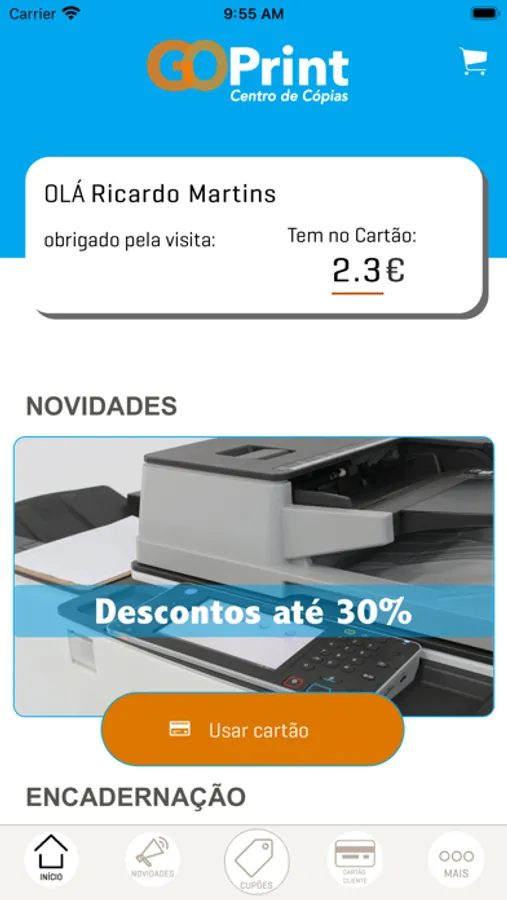 Através da APP GO Print os clientes poderão gerir e consultar vários aspetos associados à utilização do seu cartão de cliente tais como, os benefícios acumulados, validades dos mesmos, relatório de utilizações, ativação de cupões, novidades, agendamentos, etc.