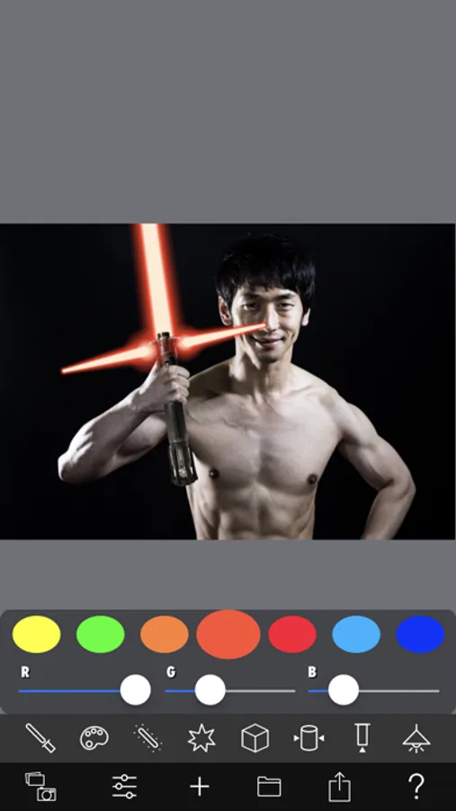 - Lightsaber color (RGB setting, 8 preset colors + none)