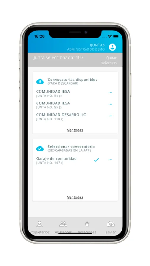 Se descarga la convocatoria correspondiente en la app, y se puede ir a la junta con la información en el móvil o la tablet, incluso en lugares sin cobertura.