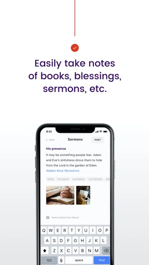 Devoted provides you with all the tools you need to create entries regarding prayer, proclamation, diary, dreams, meditations, blessings, books, sermons and prophecies. Add notes, pictures and voice recordings and check back on them as often as you like. Search by category or scroll though the timeline to find exactly what you are looking for.