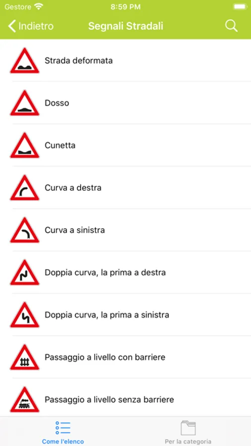 * L’elenco completo degli segnali stradali dell'ultima edizione del 2021 con la possibilità della ricerca;
