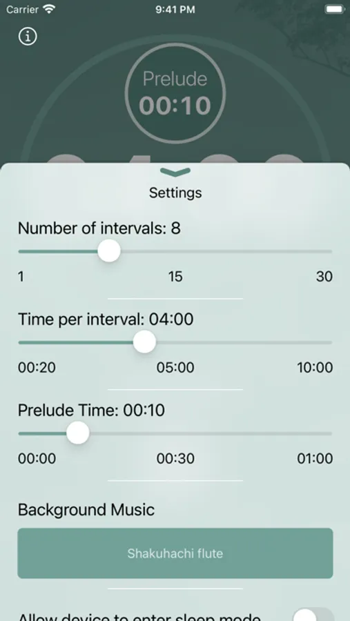 Choose a prelude long enough so you have time to get comfortable before the timer starts.
