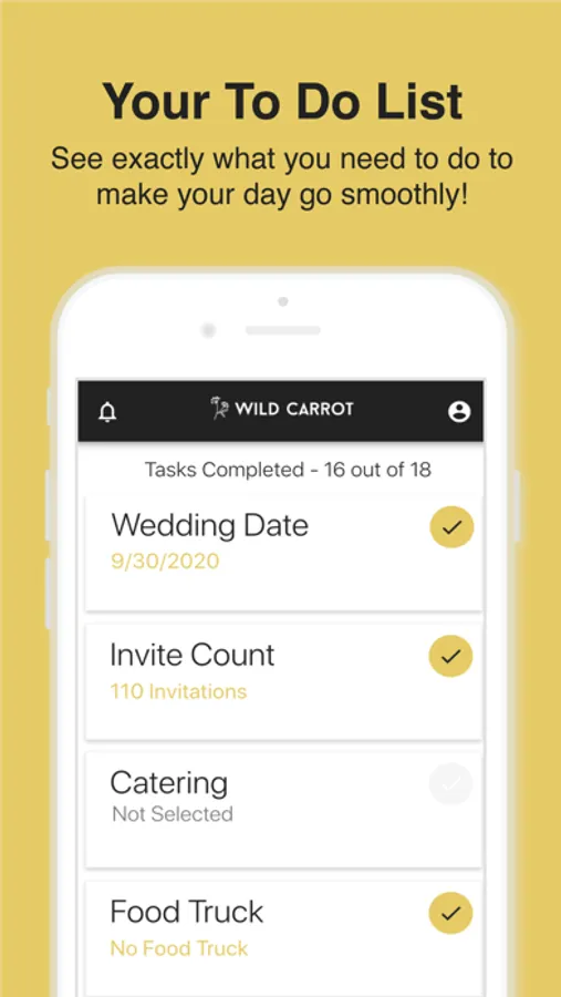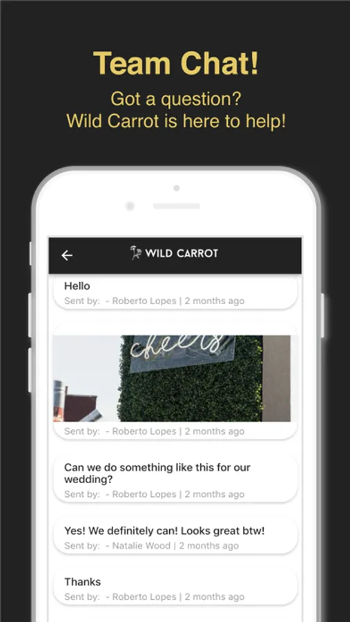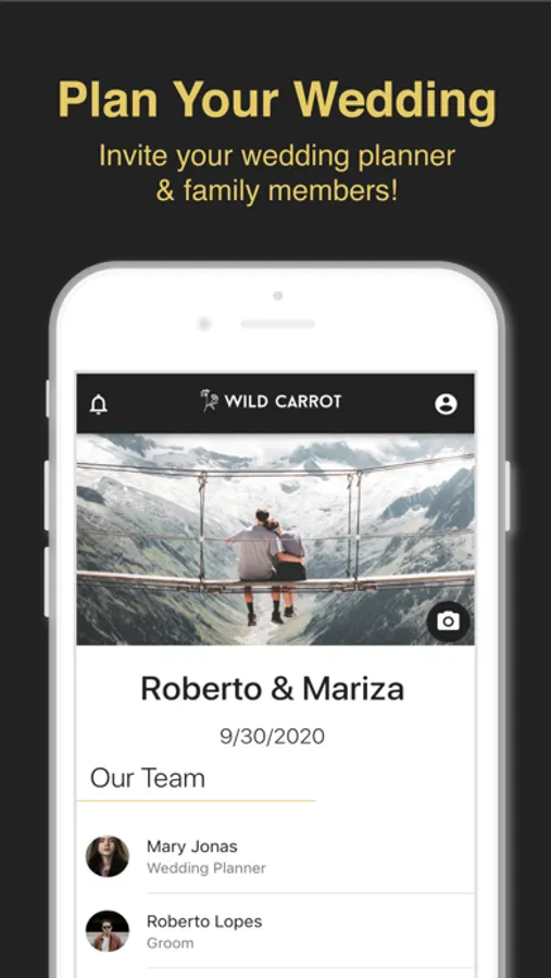 Everyone knows that planning a wedding takes a lot of time with tons of little tasks. The Wild Carrot app helps our couples throughout this entire process. Add your team members, track your progress with your to-do list, chat with us, and add your inspiration images. Your wedding details all in one place.