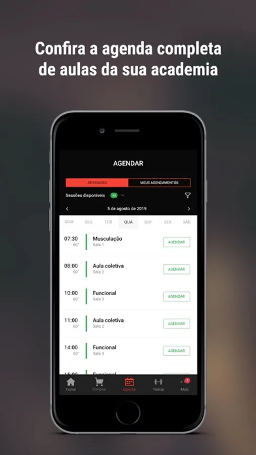 - AGENDA: faça check-in, consulte horário, reserve lugar na sala e, se aula que você quer estiver lotada, entre na lista de espera e seja notificado assim que tiver vaga disponível! Tem mais: não consegue ir ao treino? Cancele o agendamento direto pelo ACADEMIA GAVIÕES.