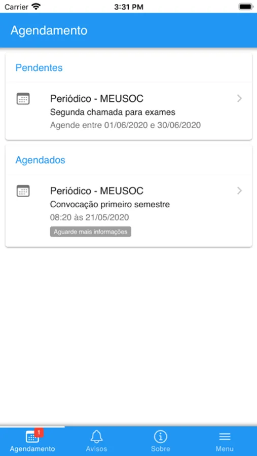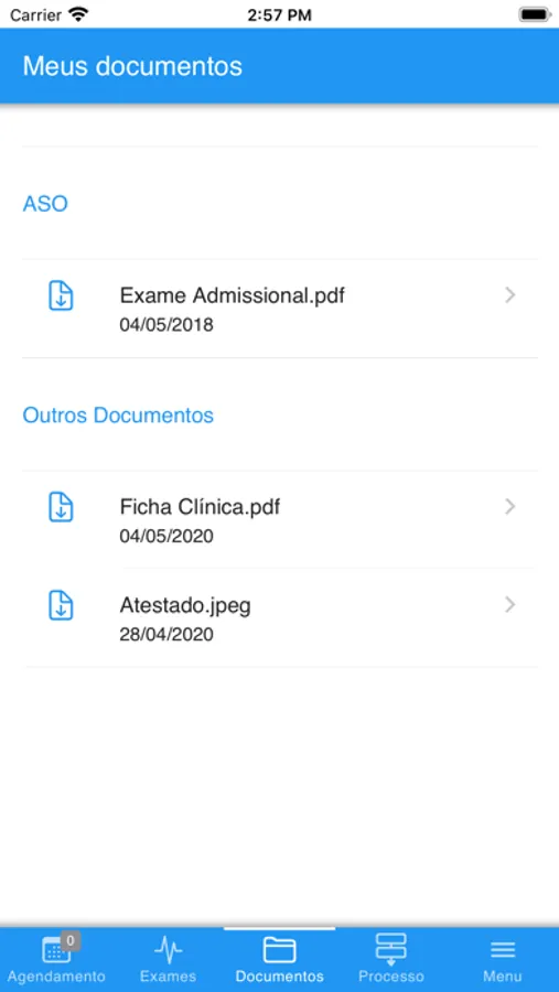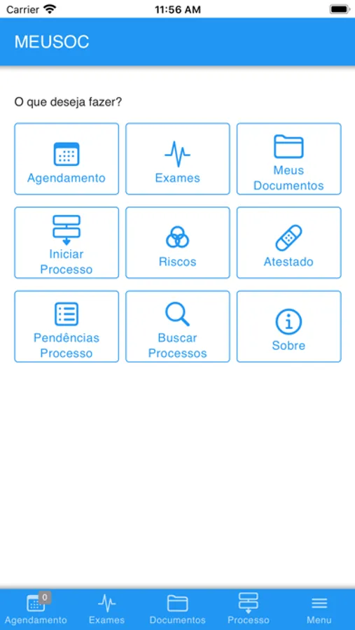 Além do agendamento de exames, os usuários podem consultar seus exames e documentos, os riscos que correm no ambiente de trabalho e/ou os Equipamentos de Proteção Individual que precisam utilizar.