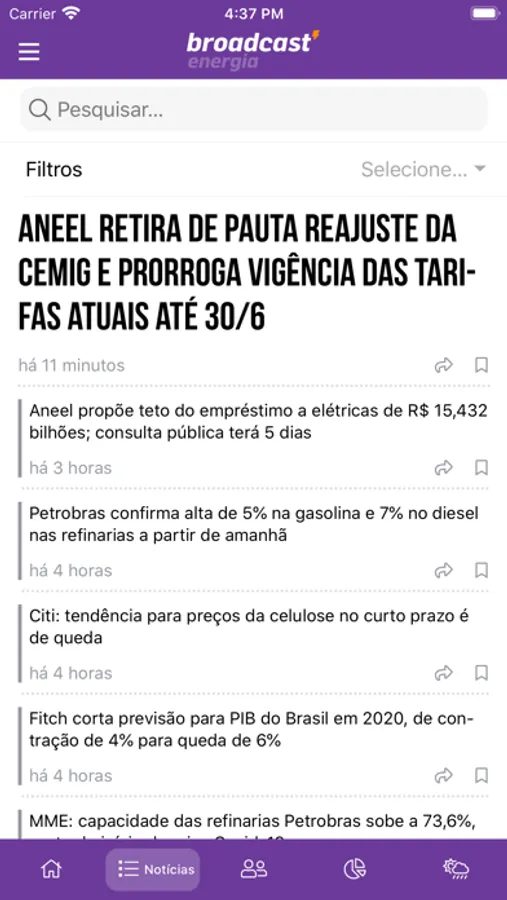 Broadcast Energia, os fatos que movimentam o mercado de energia no Brasil.