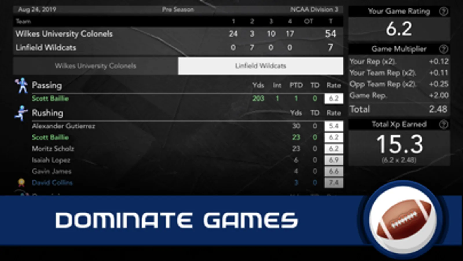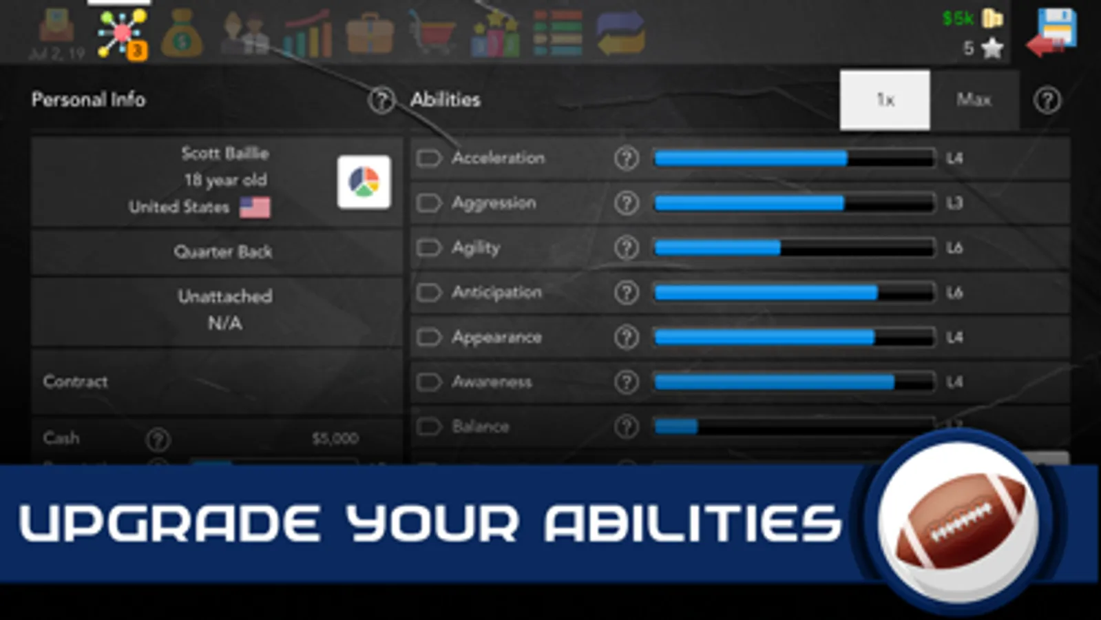 As you gain experience, you can upgrade abilities that suit your playing style and position. Perhaps you become a superstar quarterback, lightning fast wide receiver or even a defensive powerhouse?