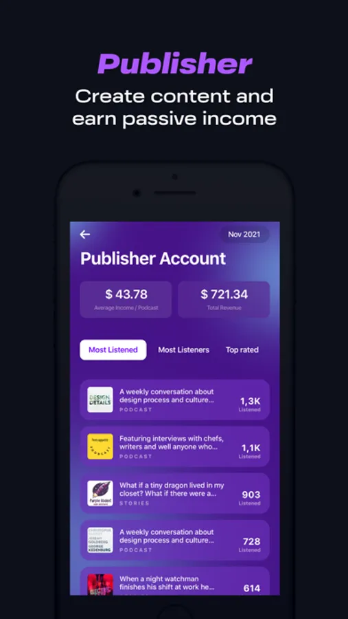 As a publisher of Metta, you can produce content about your profession, hobbies, expertise, and interests, convey your voice to thousands of listeners of Metta, and create a passive source of income while increasing your popularity.
