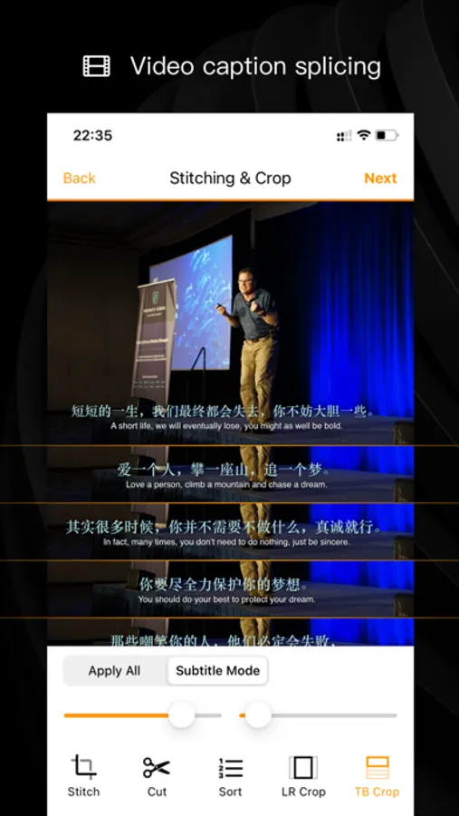 - Supports selecting frames from the video for video line splicing, one-click line height adjustment
