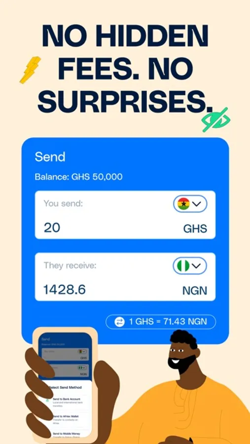 Conventional providers like banks and Western Union mark up your exchange rate, charge you expensive sending and receiving fees, or both. With Afriex App, you can expect non off that. You always get the lowest exchange rate, zero fees added, and instant transfers when you send money home to Africa.