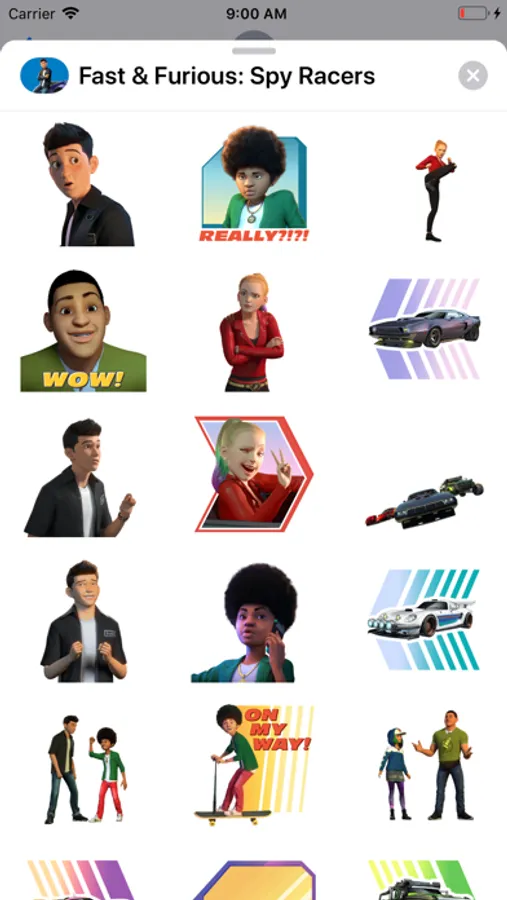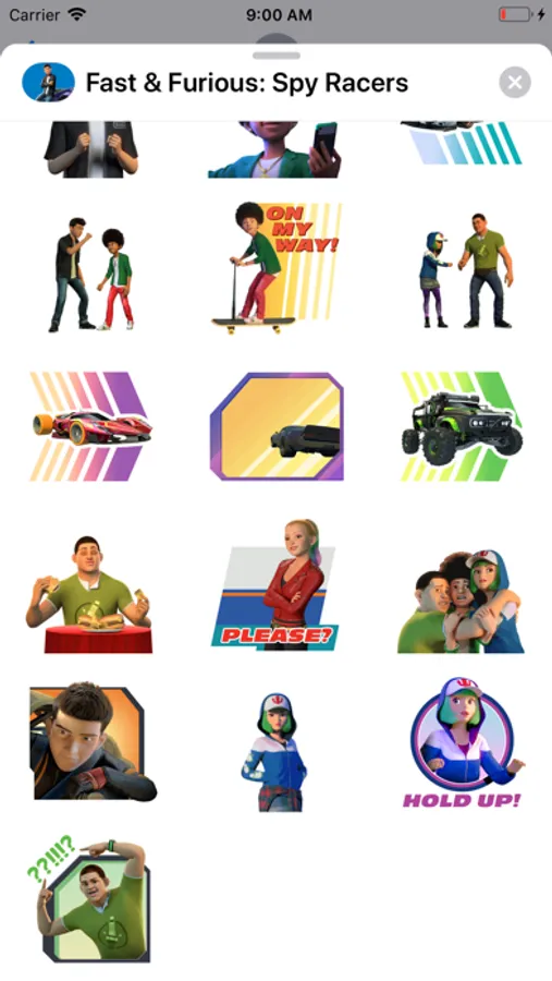 Featuring characters and cars from DreamWorks' animated series on Netflix, Fast & Furious: Spy Racers, to give your conversations a nitro boost!
