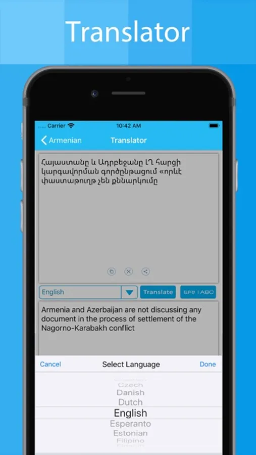 The most exciting feature of this application is you can translate Armenian word to any other language like English, Marathi, Armenian, Armenian and all other Indian languages as well as all international languages like English, Hindi,Russian,Germen,French etc....