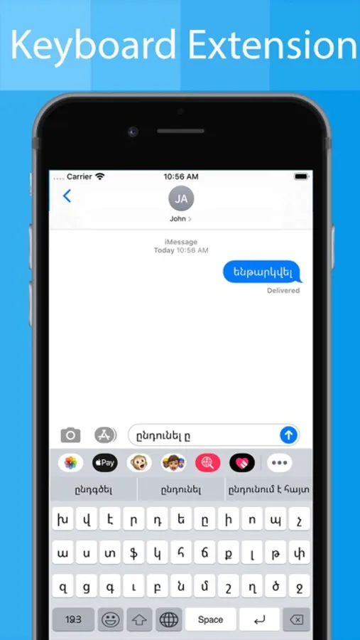 * With the help of Armenian Keyboard Extension you can write in Armenian language in any application. You have add the Armenian Keyboard Extension from your phone settings.