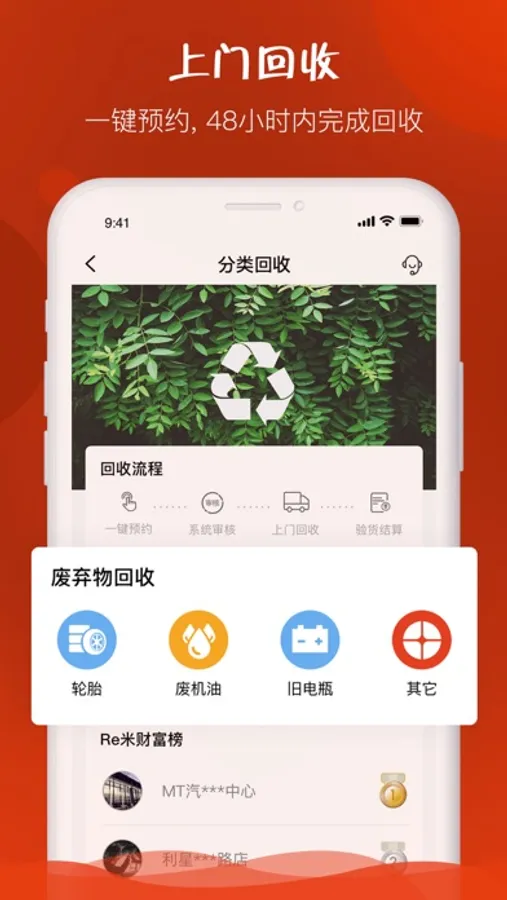 我们致力汽车销售及维修市场的固废回收业务,目前已是上千家汽修店的选择,合规处置废弃的轮胎、机油瓶等废弃物。