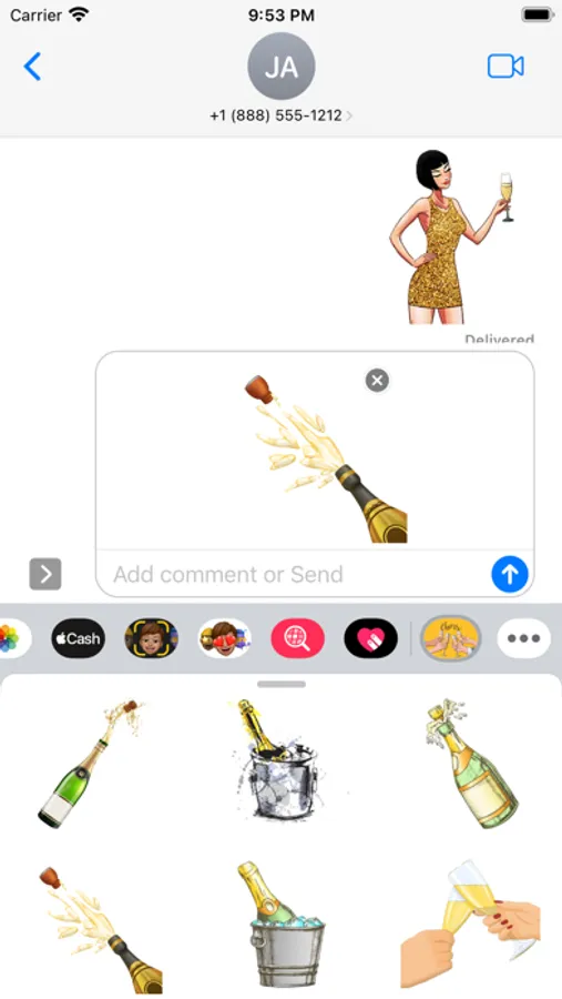 It’s champagne time? Invite your friends to a party, countdown, casual drink or answer to their invitation with champagne sticker.
