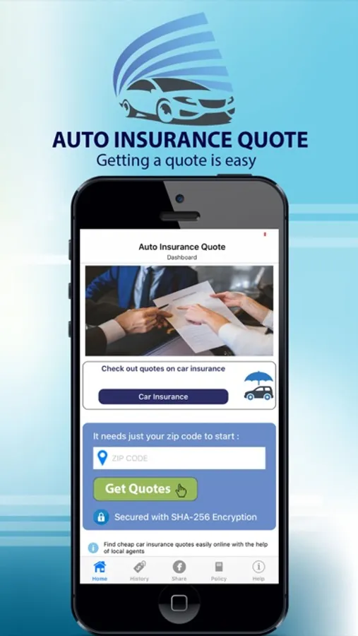 It's easy to get quote on auto insurance and apply policy. App allows to compare rates on car insurance and get deals from licensed agents.