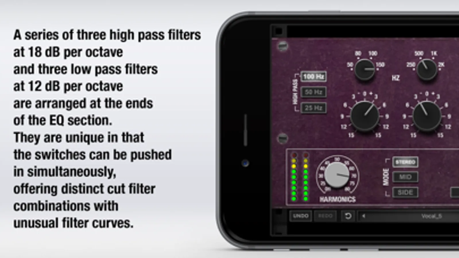 • Four bands of classic British equalization (the mid frequency EQ sections are «peaking», while the high and low frequency sections are «shelving»);
