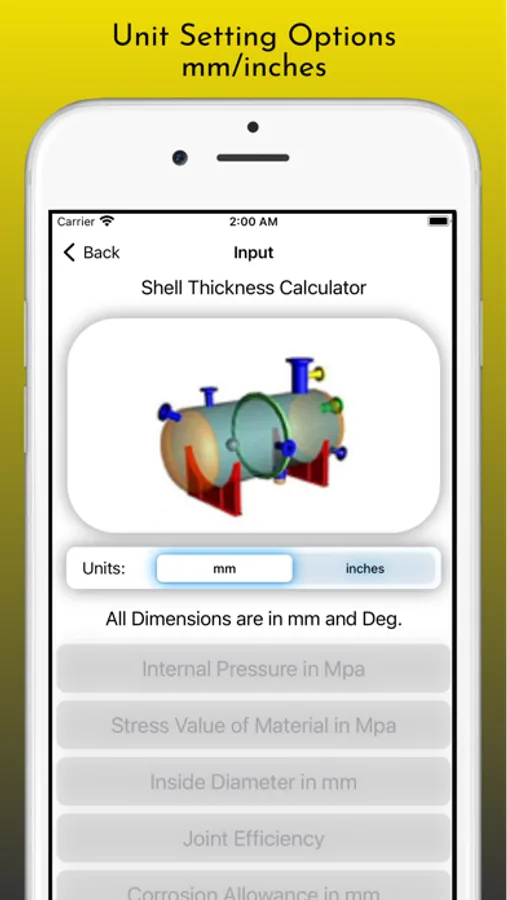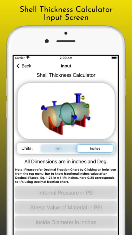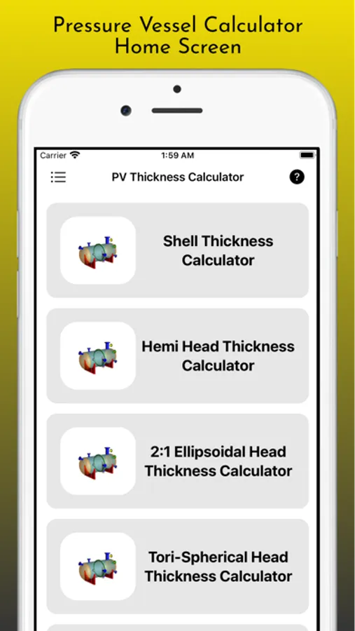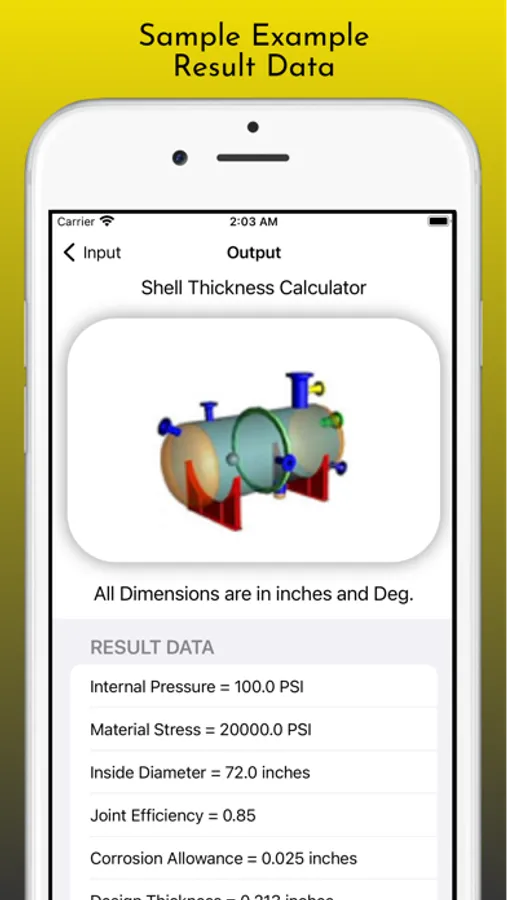 This App build to Calculate Design Thickness and Nominal Thickness for Shell, Hemi Heads, Tori Heads, Ellipsoidal Heads and Conical of Pressure Vessels as per ASME Section VIII Div 1 Codes