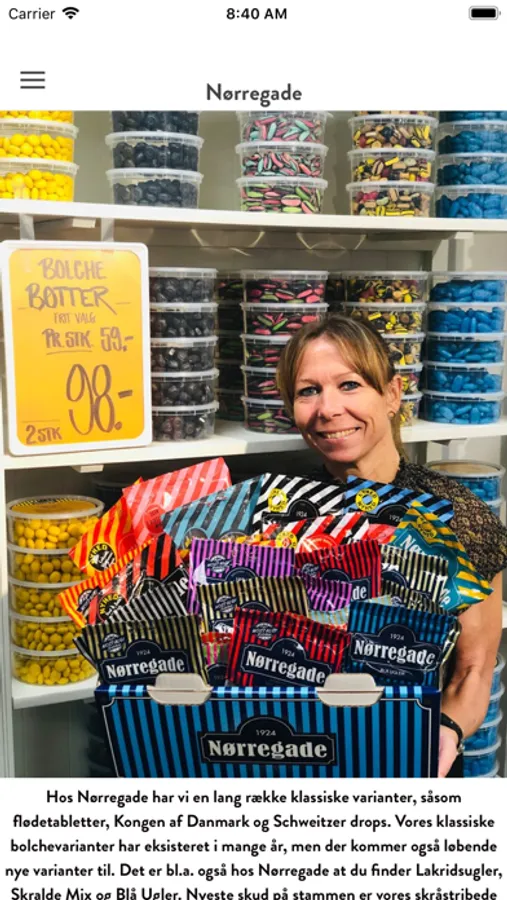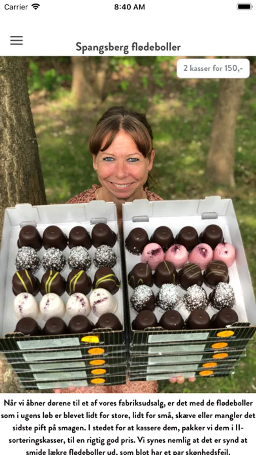 Du har desuden altid vores åbningstider, adresser og tilbud lige ved hånden. Har vi en uge lavet ekstra mange skæve flødeboller, får du, med vores app, mulighed for at få besked herom før alle andre, og dermed sikre dig lækre skæve flødeboller til weekenden.