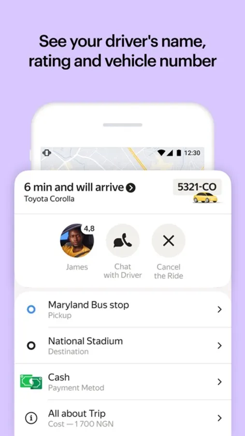 Let your loved ones know about your ride with the route-sharing feature. Stay in touch with the 24/7 support chat just in case.